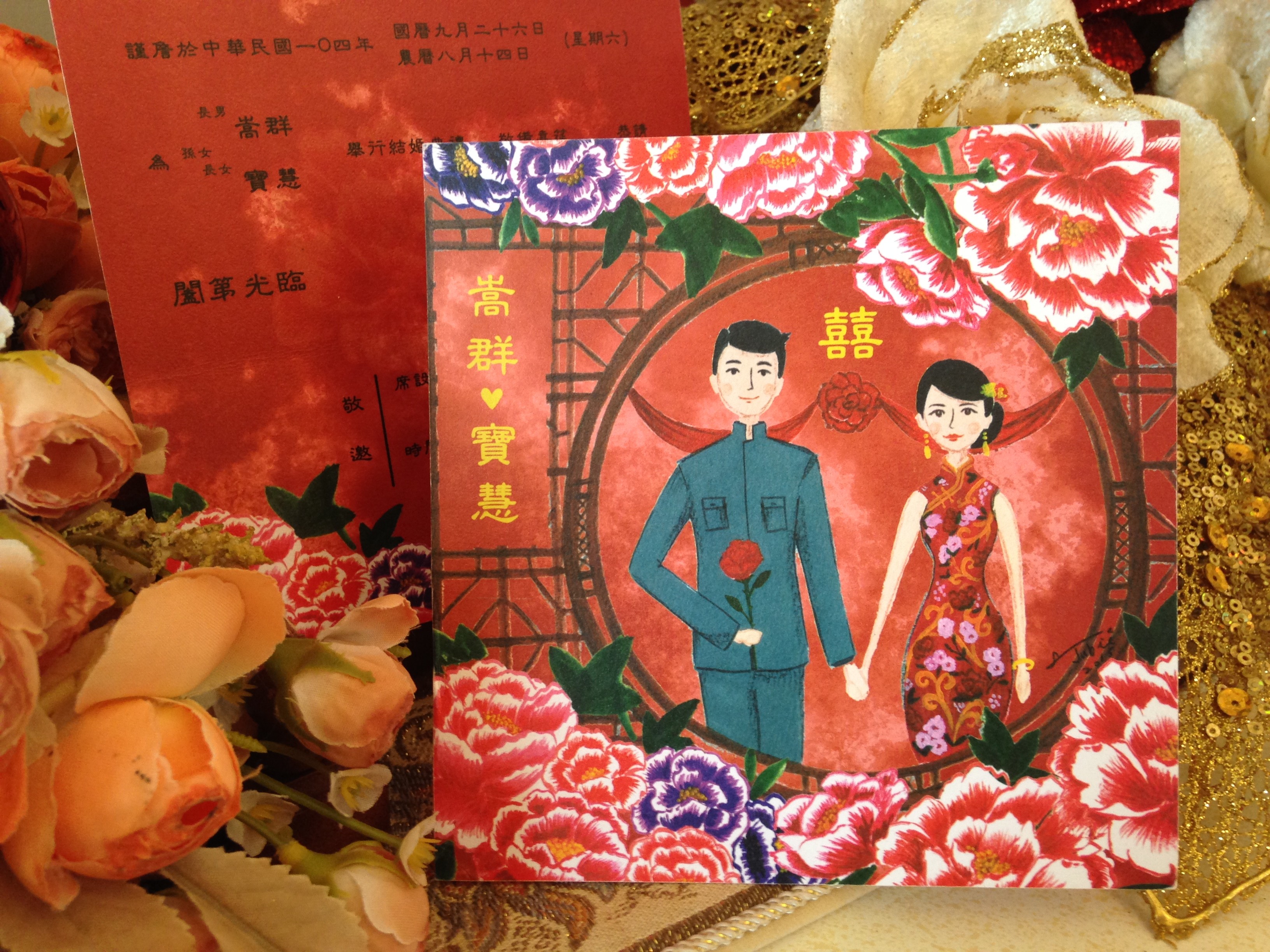 插畫搭配上濃濃的中國風,經典大方又不落俗套,好愛好愛!謝謝可愛的客戶寶兒一直的支持和貼心:)看到成品的那一刻,我們都開心的尖叫了!願妳不管面對怎麼樣的難關,都能過關斬將,一直一直幸福下去。