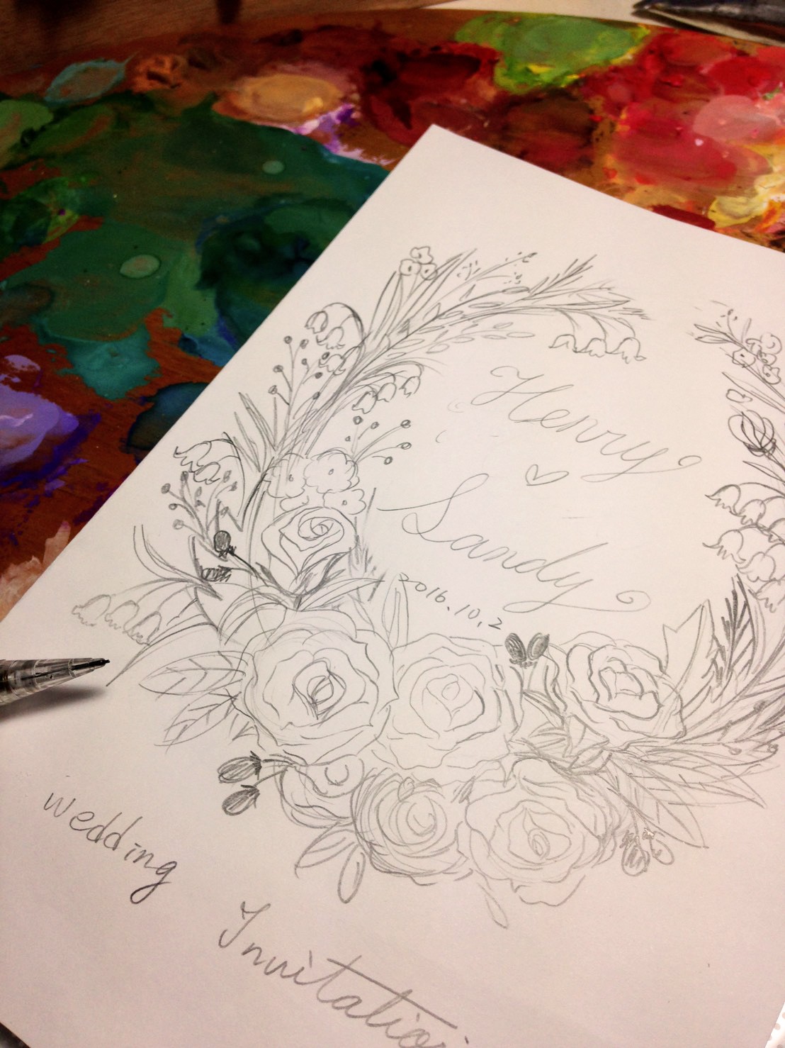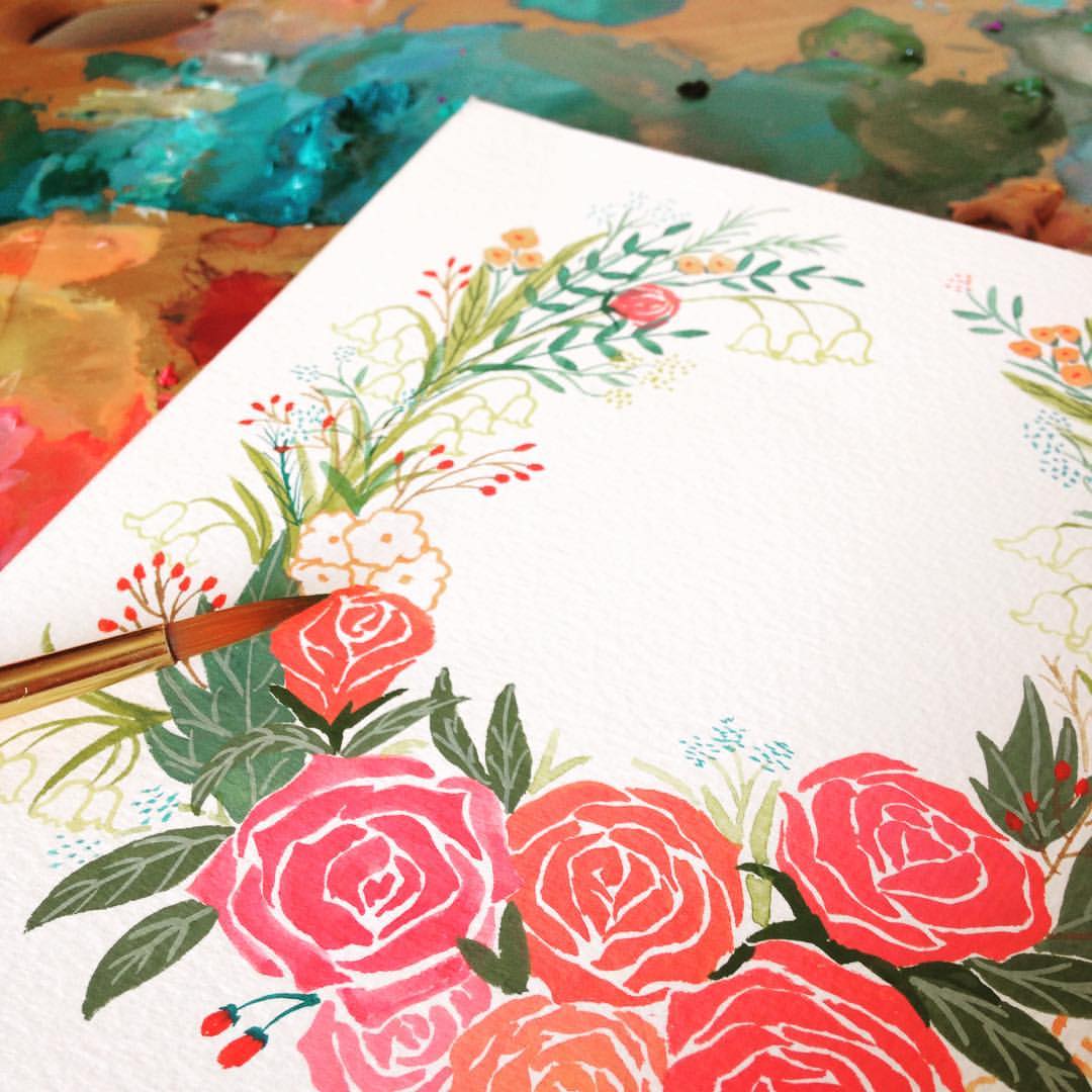 花朵要精心配色才凸顯出手繪花圈的細緻與溫度,作為美好婚禮的邀請函,一筆一畫都不能落俗套。