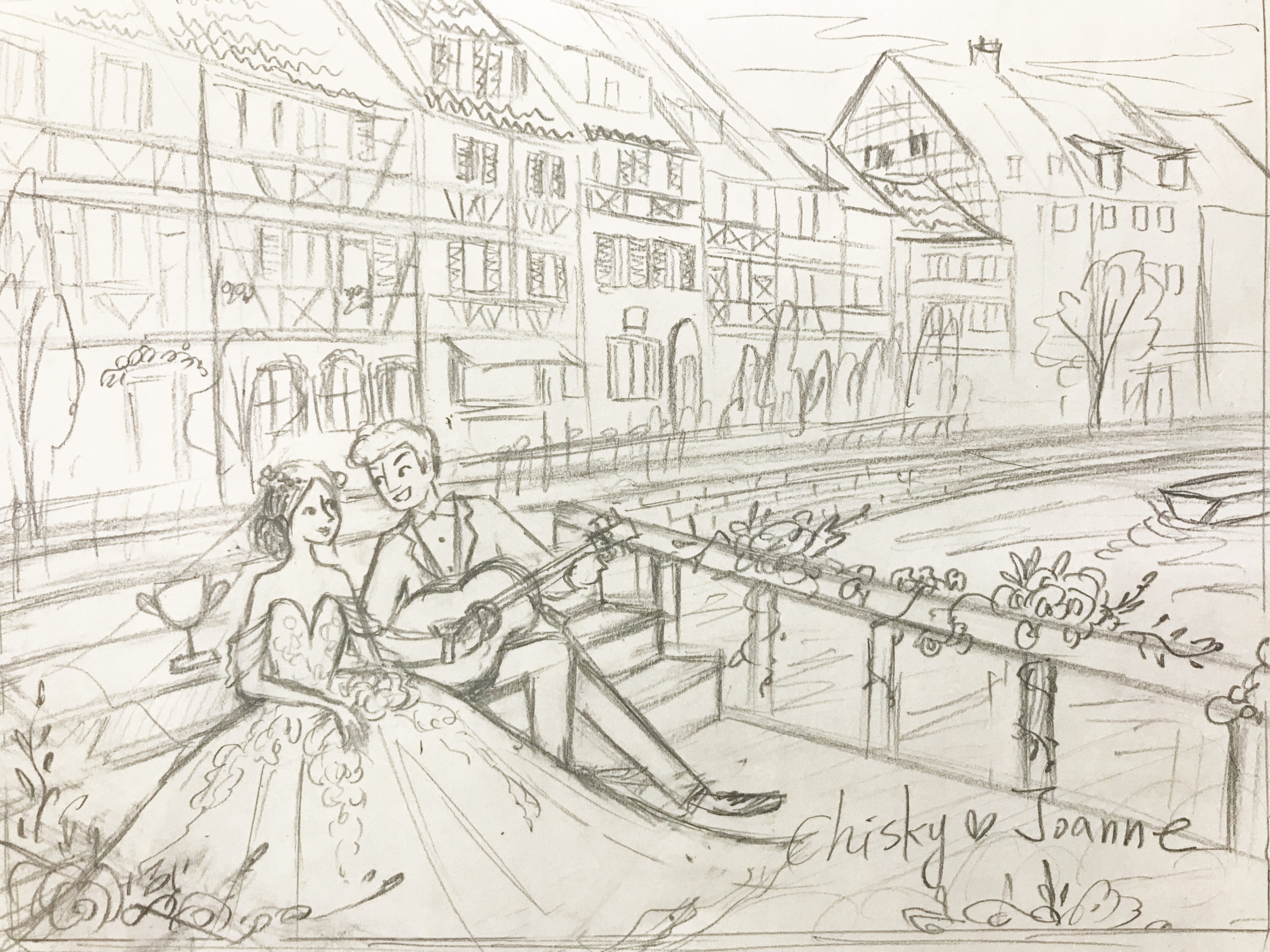 當初看到草圖時超驚喜,因為和我想像中的畫面幾乎一模一樣,感覺Jubie會讀心😂收到成品後時不時就想拿來看,每看一次就覺得很感動很幸福,所以對我來說真的不只是喜帖,也是我們很重要的紀念☺️