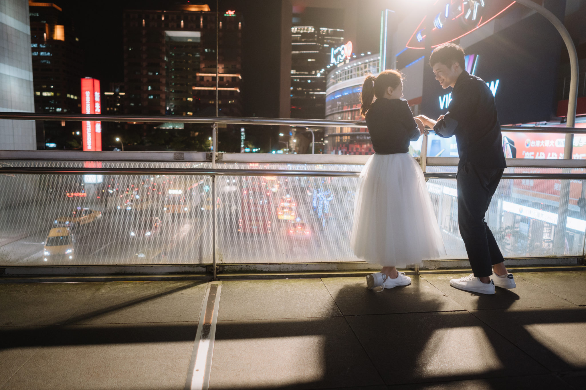 在聖誕節前的夜晚到信義區拍婚紗,簡直超加分!想拍夜間的新人可以筆記一下~有閃亮亮的燈光、大型聖誕樹的加持,成品既特別又有質感!