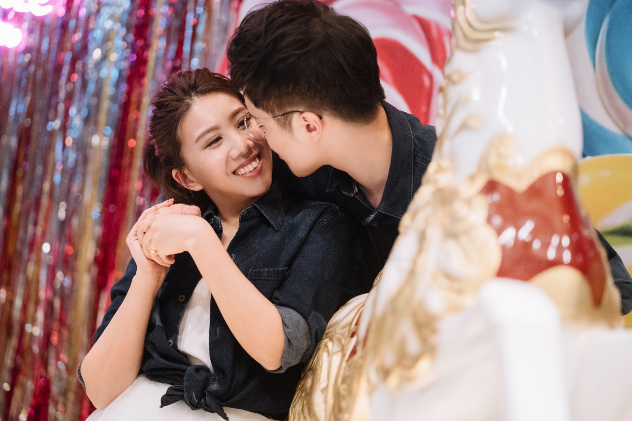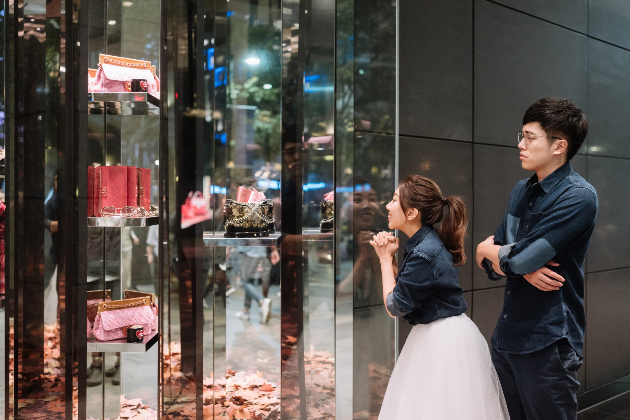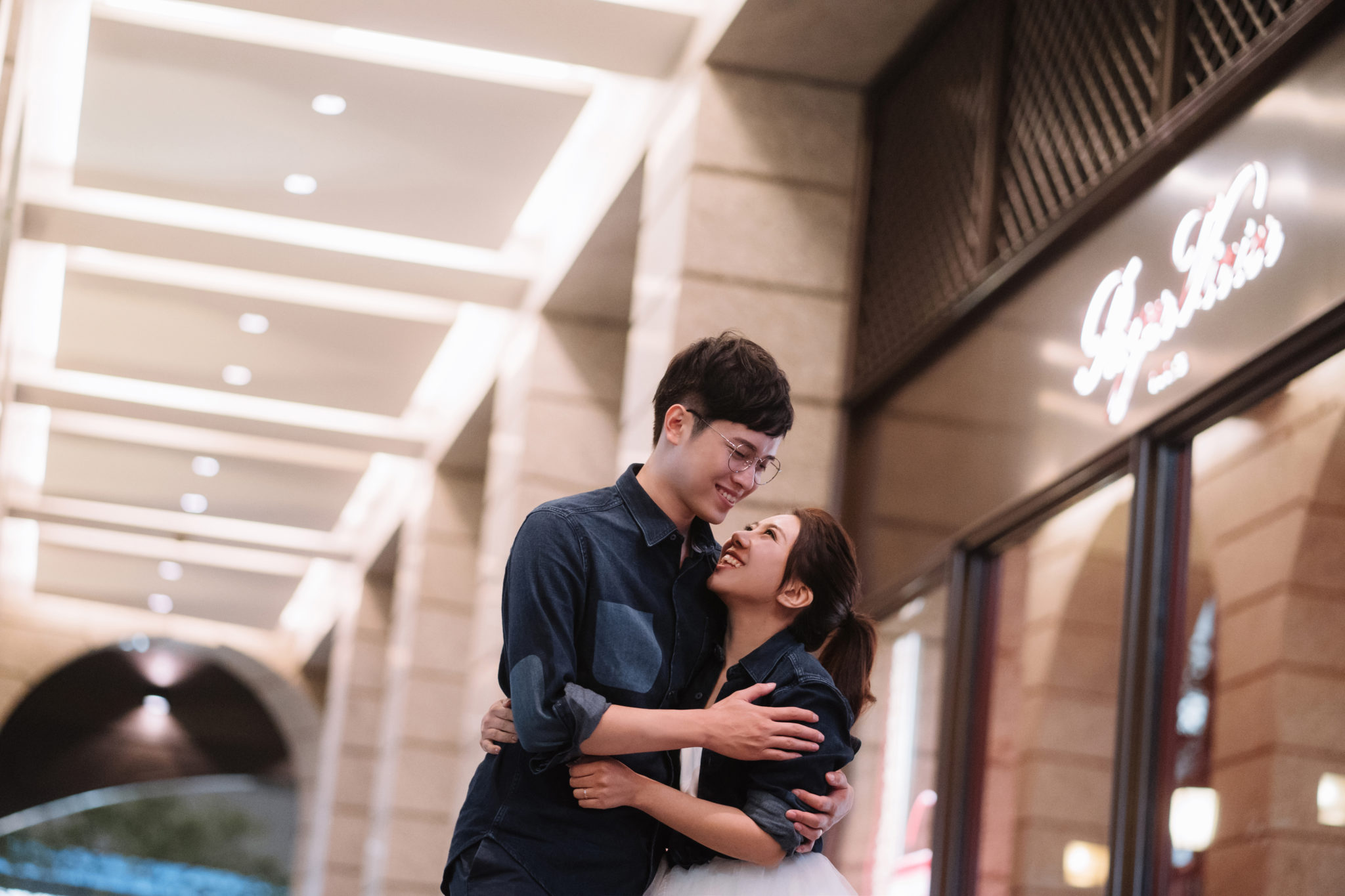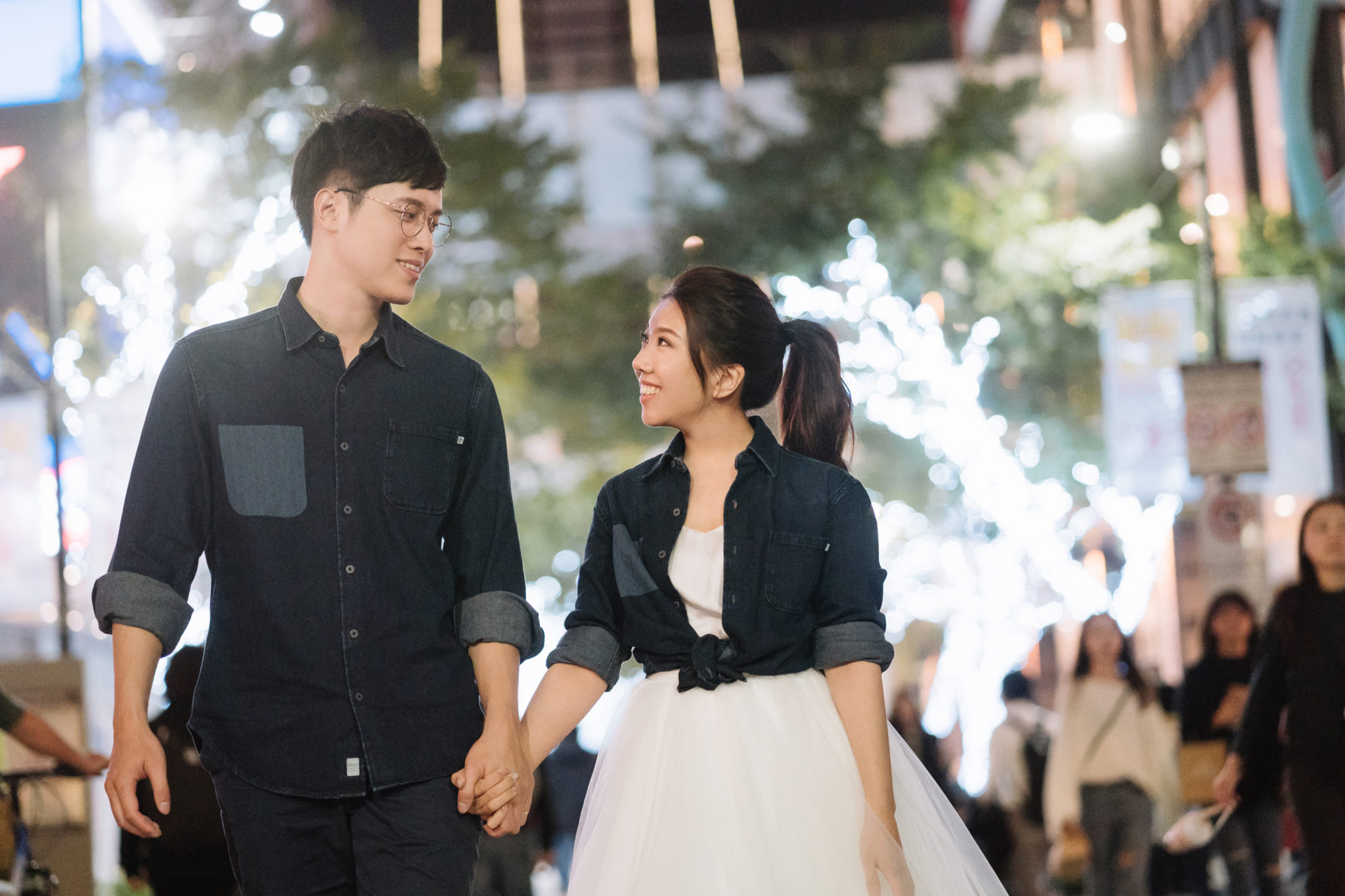 如果說我心目中的新娘,是純淨的白,那我心目中的愛情呢?當然就是許先生了!因此我們決定回到第一次約會的威秀影城,還原當時的場景,穿著便服拍出最自然最戀愛中的我們!