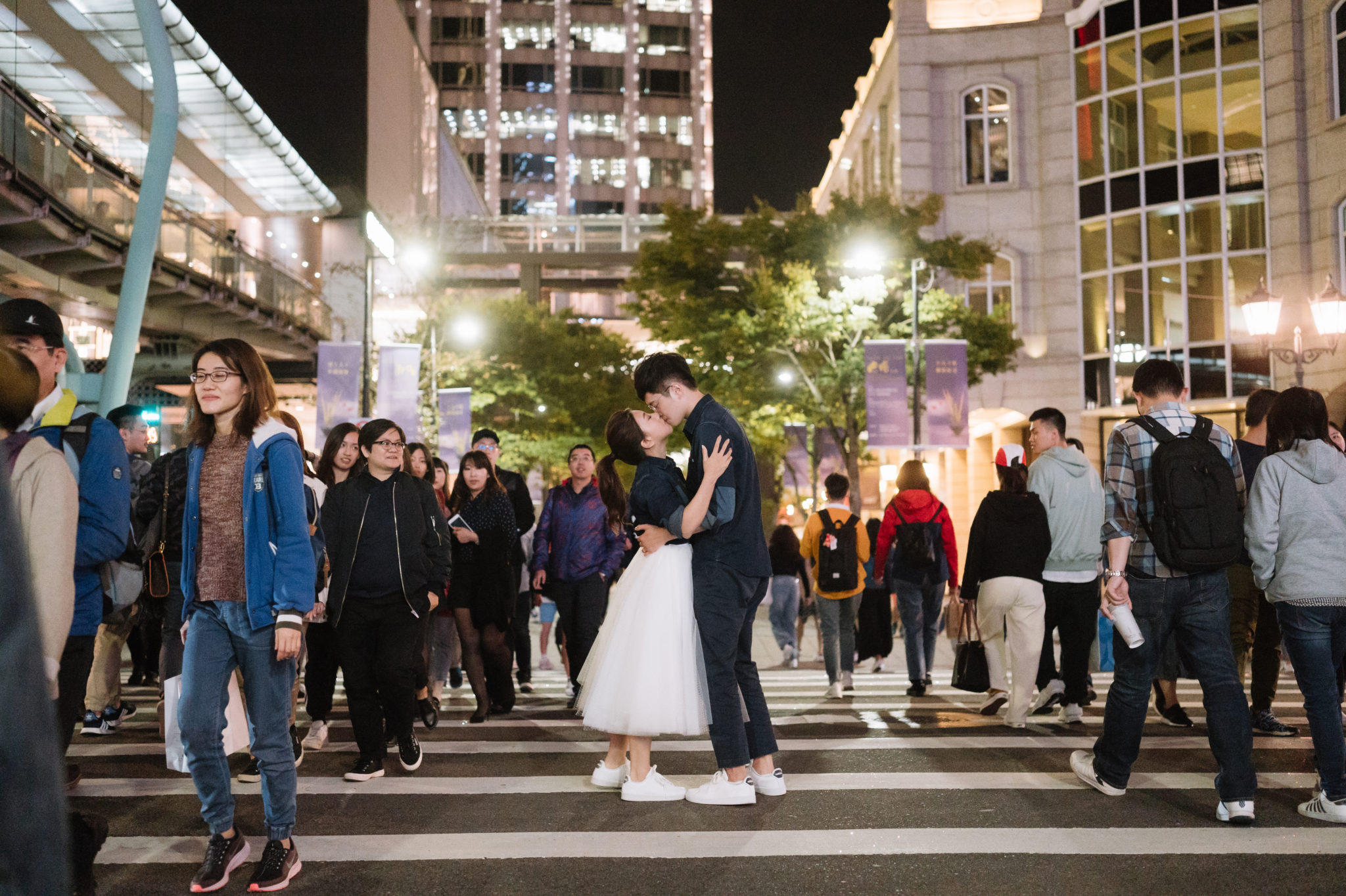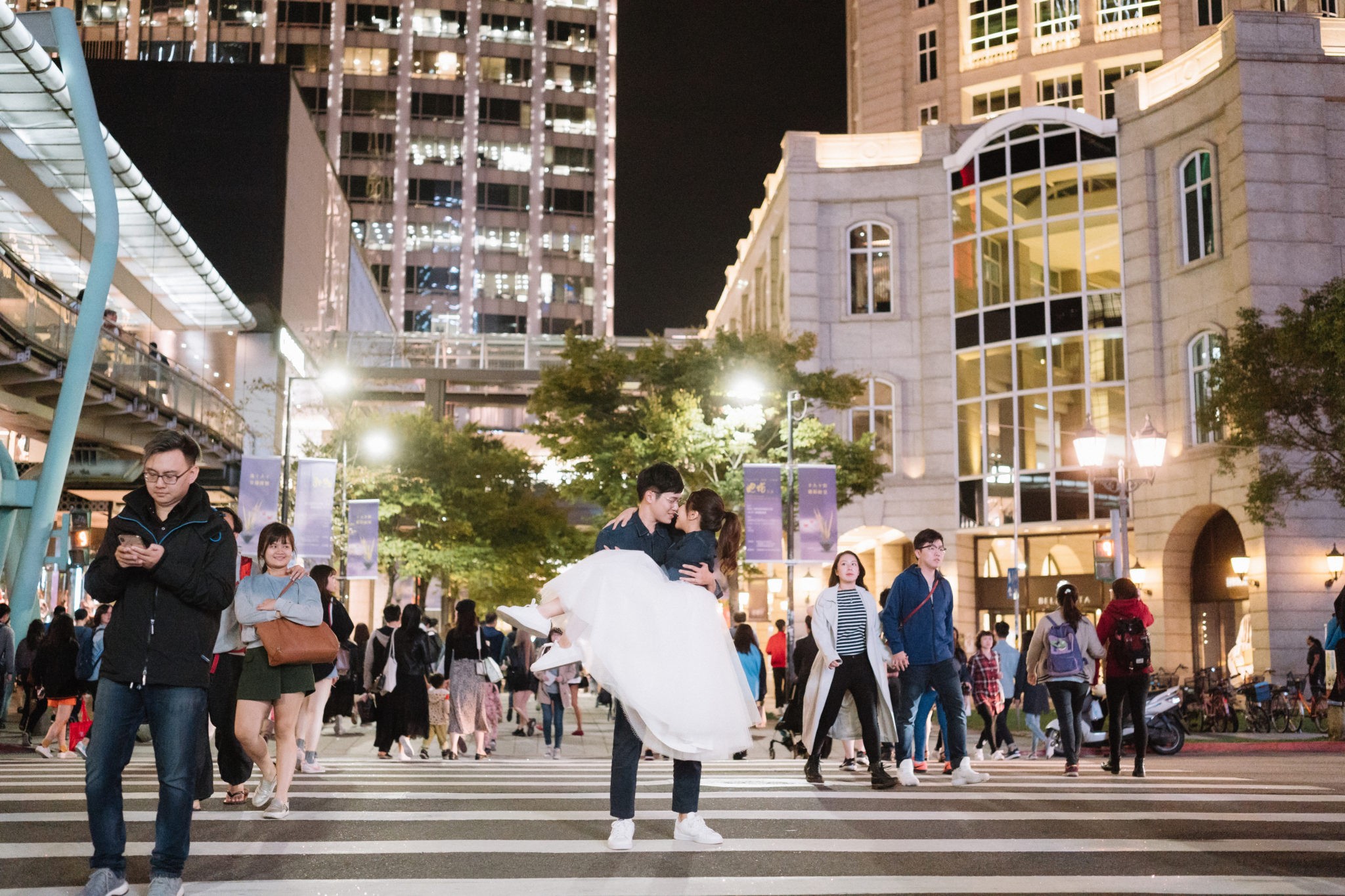 當天也看到有其他人拖著長擺禮服在信義區拍攝,只能說我們好隨性自在,好真實!海哥當初的建議果然是對的!