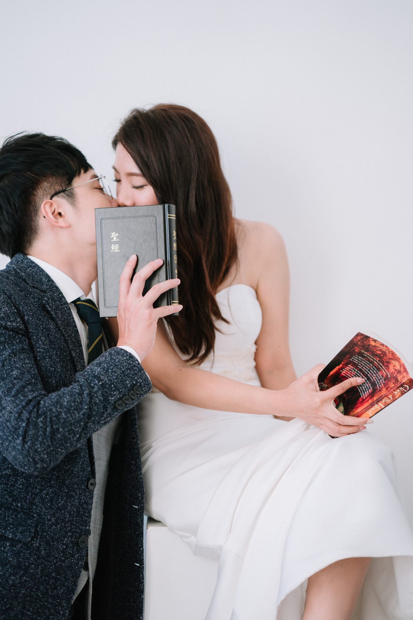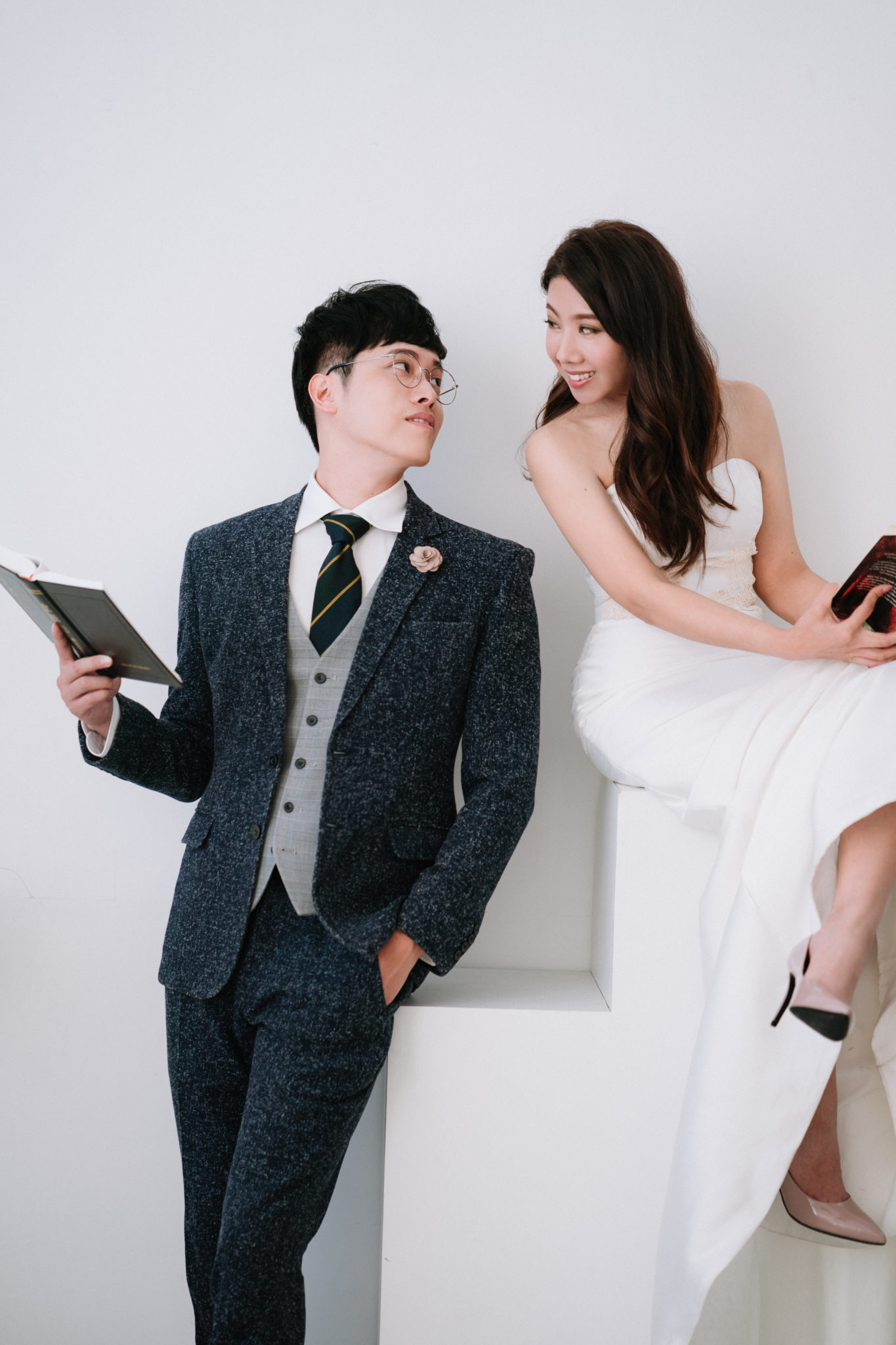 因此當拍攝前海哥問我們,有沒有什麼可以代表你們的東西可以結合在婚紗照裡?許先生馬上說:書!就是書了~