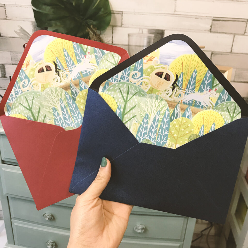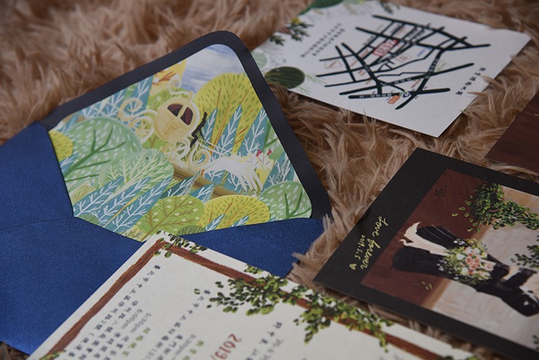 信封內襯我也是畫了幾種,跟先生一起投票,最後選出了搭乘南瓜馬車的這張。