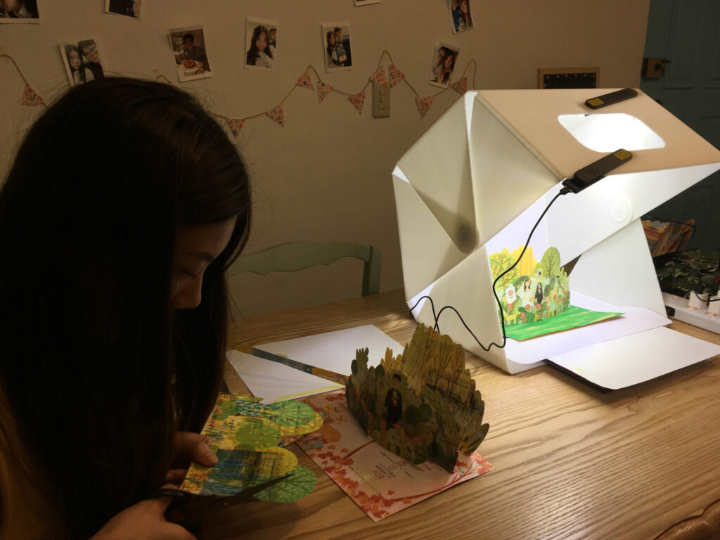 不同紙質的效果也會不一樣,每張紙有不同的厚度、硬度、延展性。上面紙卡的紙跟下面卡片的紙,也需要有相對應的支撐,才可以讓展開的效果達到最好,因此在立體結構上需要各種測試、修改,才可以達到做好的視覺效果。