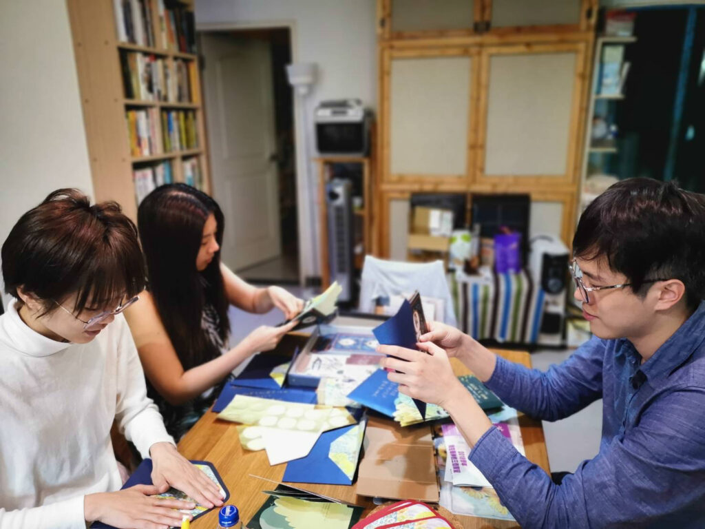 例如說中間希望人物可以突出,但是考慮到紙質裁切的精準度,就選擇不沿著人物身體去做刀模形狀,而是給一個相對突出的設計,把人物放進去確保人物不會受裁切影響,以免裁切不準到時候人的臉型怪會很詭異XD