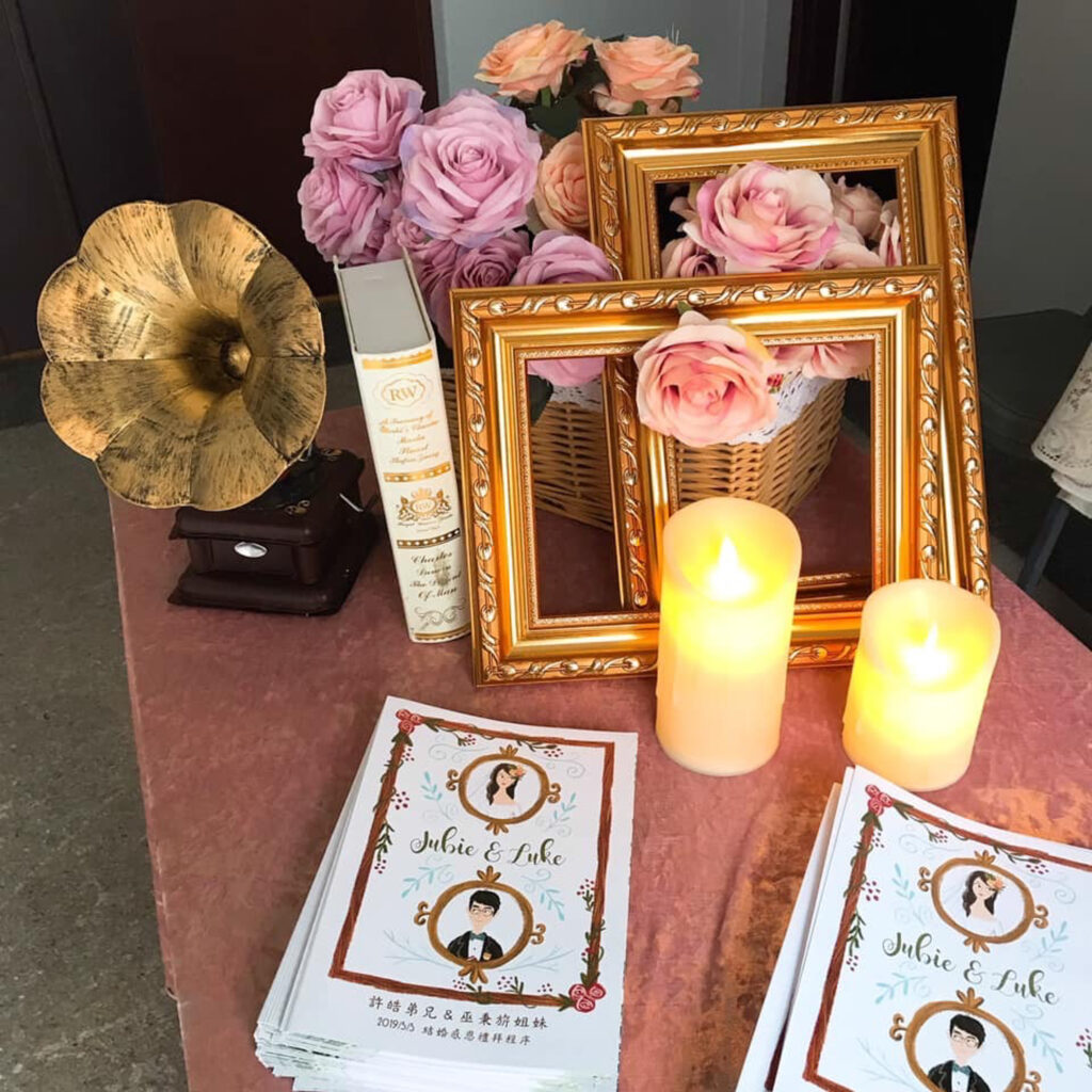 有了圖之後,我當然瘋狂用在婚禮各個地方啦!像是我們教會儀式的婚禮程序單。