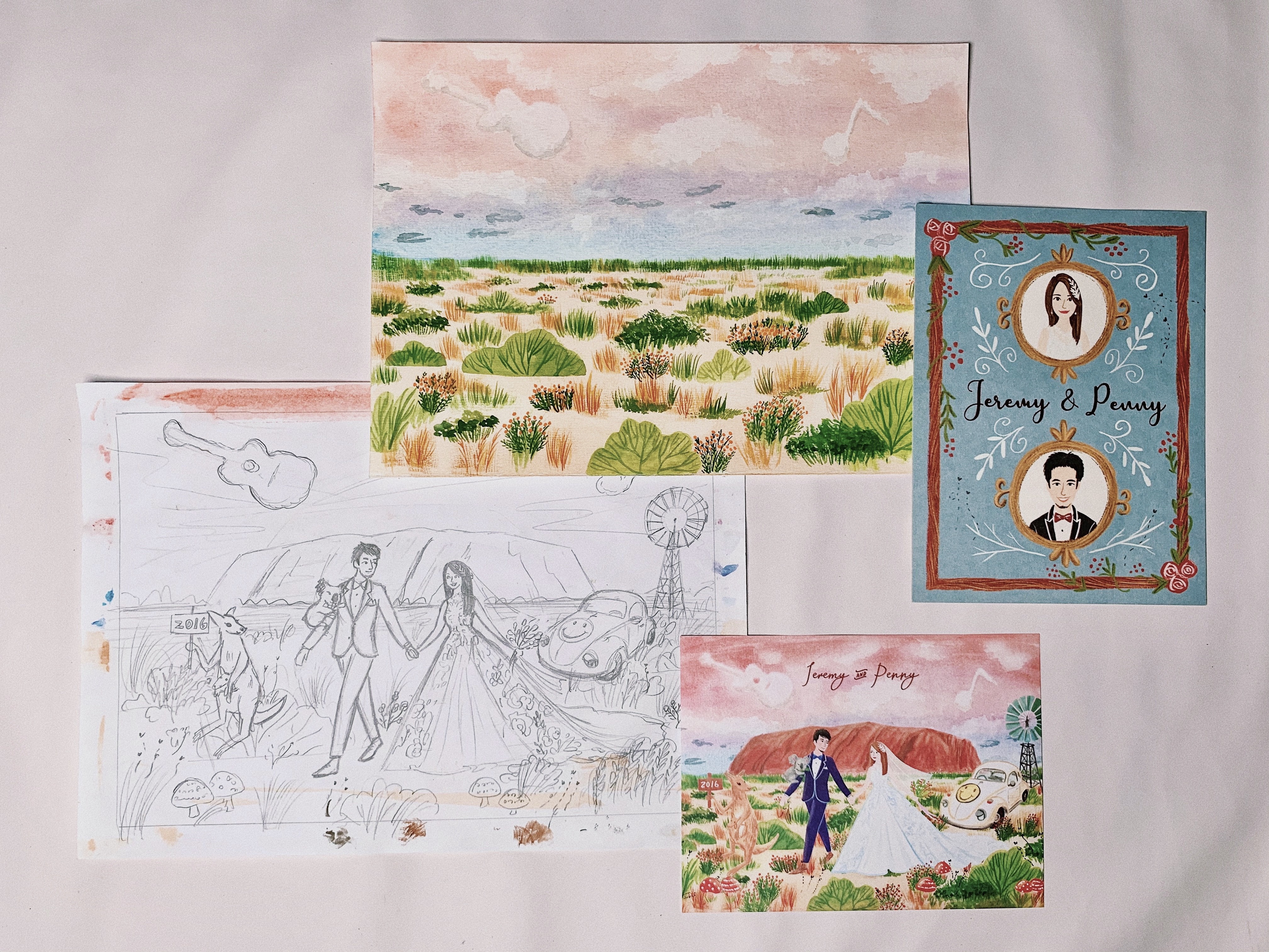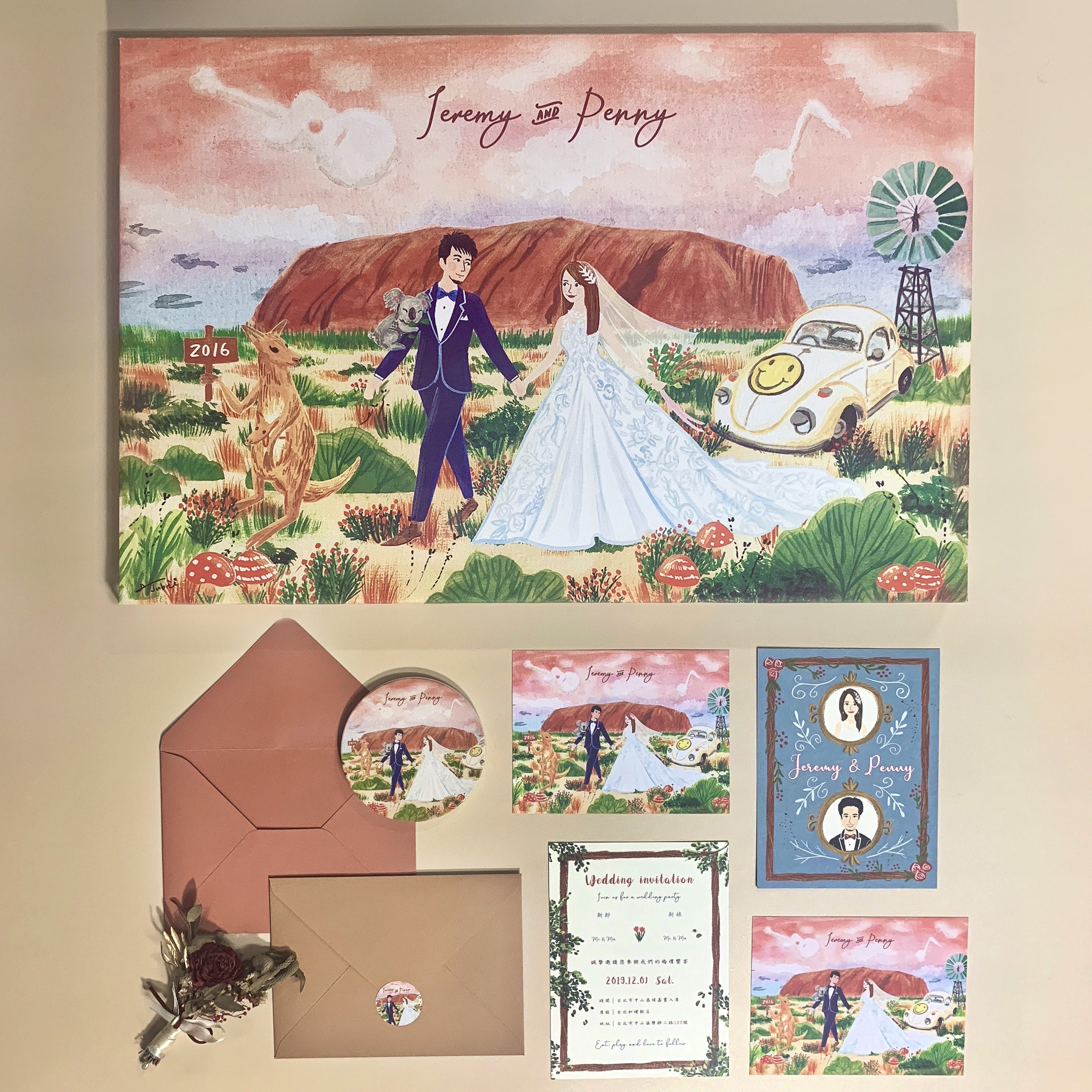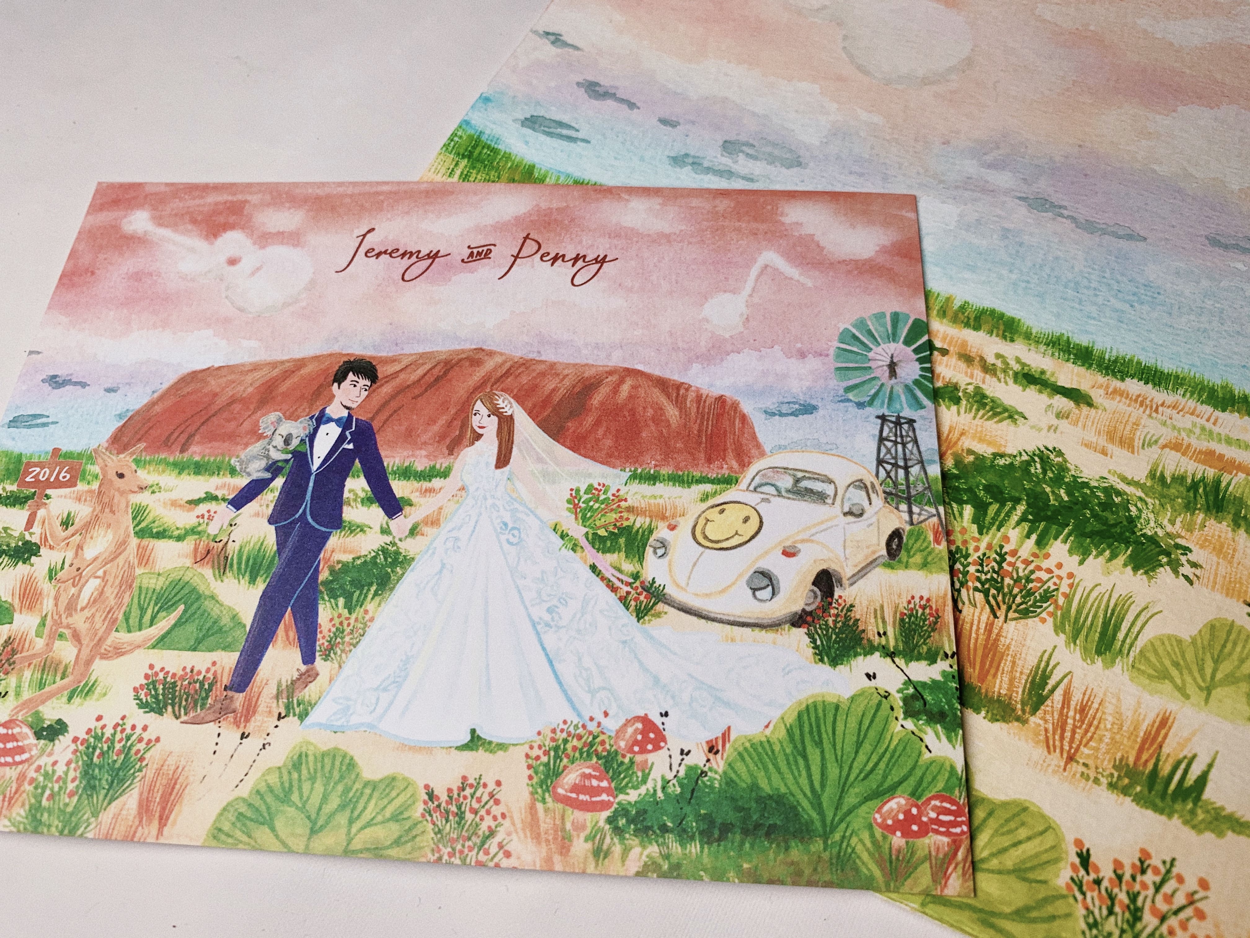 『Penny & Jeremy』澳洲艾爾斯山浪漫晚霞婚卡喜帖