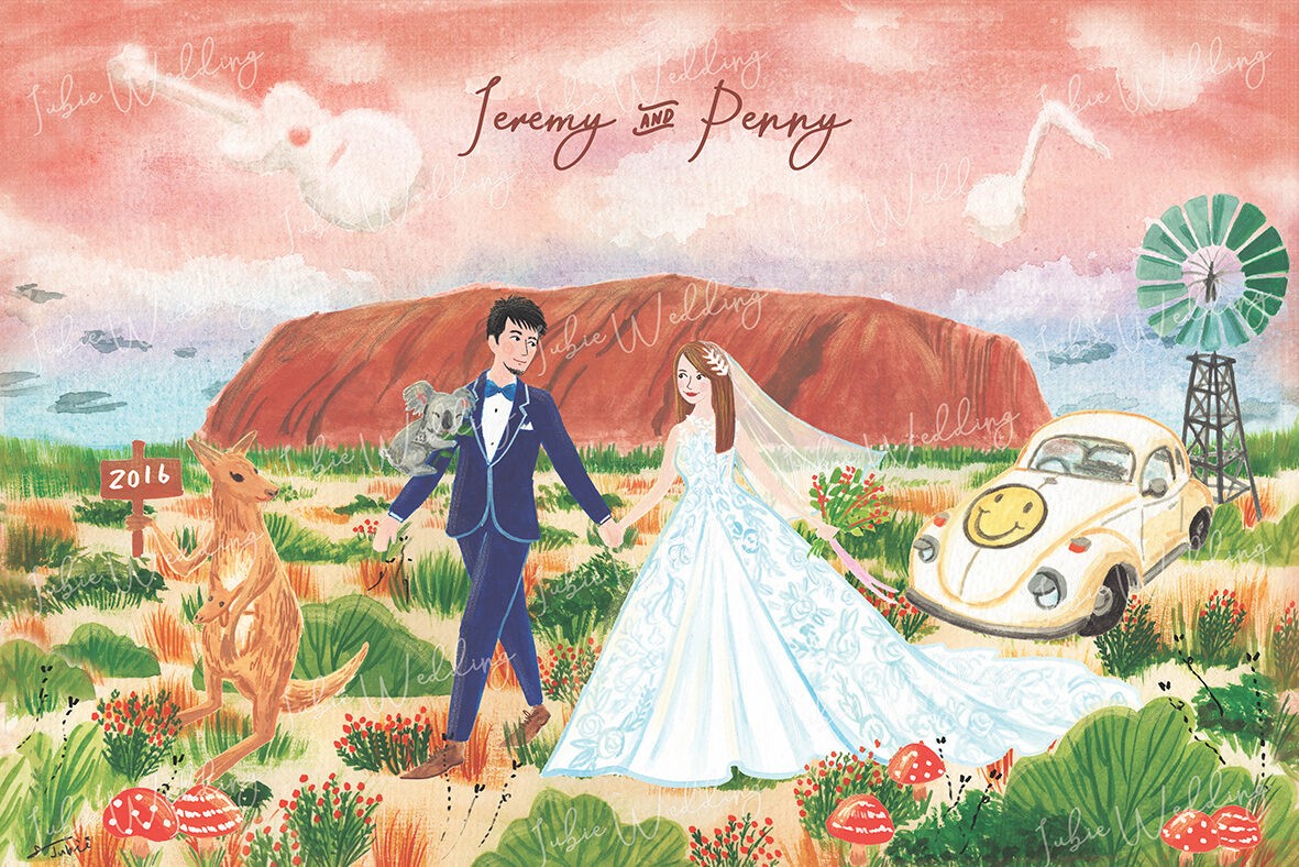 無尾熊和袋鼠,可愛的金龜車,還有新人熱愛的音樂和吉他。用他們的回憶,一點一滴,拼湊成甜蜜的畫面