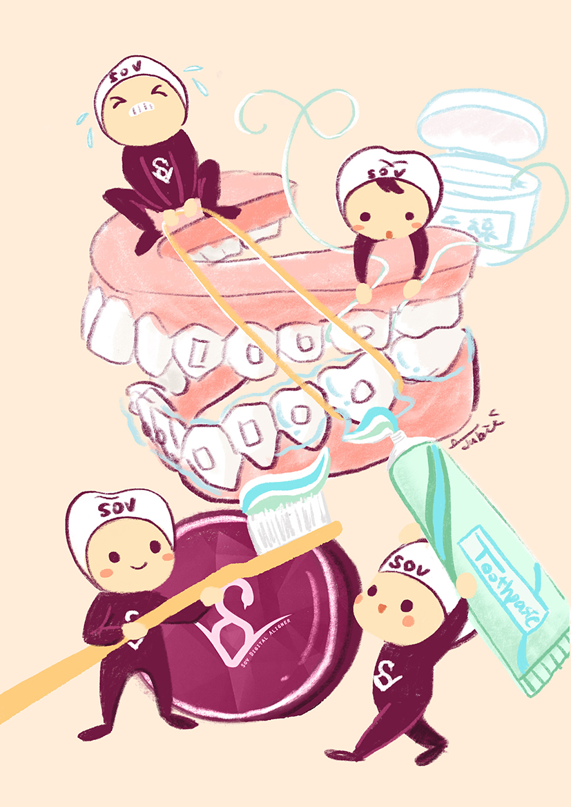 開始戴上牙套前,也是漫漫長路,首先吳醫師(我們後續就叫他聰哥。好突然)要先確保我的牙齒口腔狀況都在最健康的狀況,才有辦法進行後續的矯正治療,於是我也先進行了牙周的護理和清潔!也從這時候開始養成了每餐飯後都刷牙的習慣,讓之後戴牙套可以更快上手!