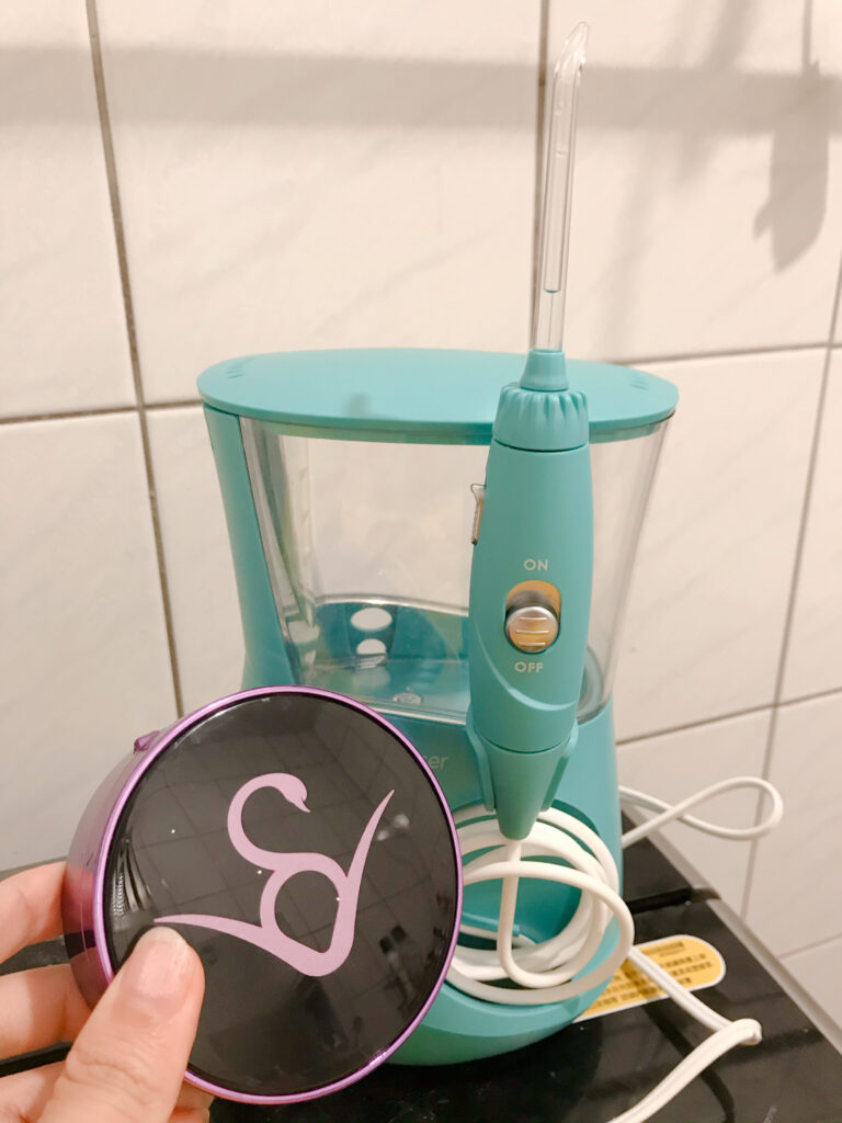 除了一般知道的軟毛牙刷、牙線、漱口水之外,我還特別推薦大家可以去買洗牙機!我自從買了洗牙機之後,每天牙齒清潔都更徹底。潔牙機可以跟牙線搭配使用,更可以沖洗到牙線清潔不到的地方。而且我們買的潔牙機還有按摩牙齦的功能,按摩牙齦請畫上五顆星!